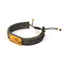 Браслет "Дичка" из Янтаря на кожаном ремешке