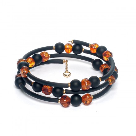 Браслет на струне с янтарем и лавой артикул 31272119340 Вы можете заказать в нашем интернет магазине "Янтарь России" с бесплатной доставкой по всей России