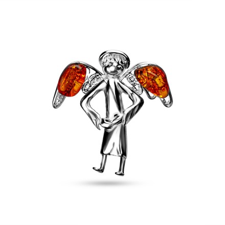 Брошь "Ангел" Посеребрение с Янтарем артикул 41321001 Вы можете заказать в нашем интернет магазине "Янтарь России" с бесплатной доставкой по всей России