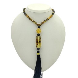 Бусы с кулоном "Слива" из Янтаря с инклюзом
