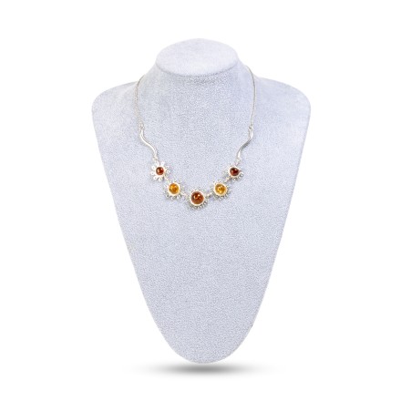 Колье "Ромашка" Посеребрение с Янтарем артикул 7535450326 Вы можете заказать в нашем интернет магазине "Янтарь России" с бесплатной доставкой по всей России