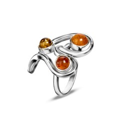 Кольцо "Трио" Посеребрение с Янтарем