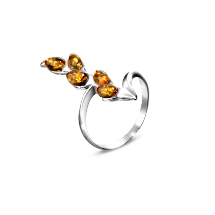 Кольцо "Веточка" Посеребрение с Янтарем артикул 123190033 Вы можете заказать в нашем интернет магазине "Янтарь России" с бесплатной доставкой по всей России