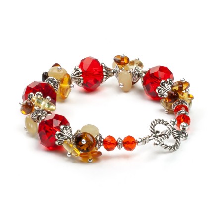 Комплект колье и браслет из натурального матового и медового янтаря, и граненых бусин красного цвета, через металлическую проставку. Длина колье 44см, регулируется дополнительно еще на 5см. Размер браслета: 17см.