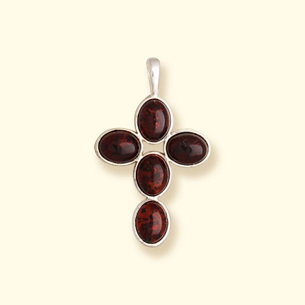Подвеска "Крестик" Посеребрение с Янтарем артикул 41344017 Вы можете заказать в нашем интернет магазине "Янтарь России" с бесплатной доставкой по всей России