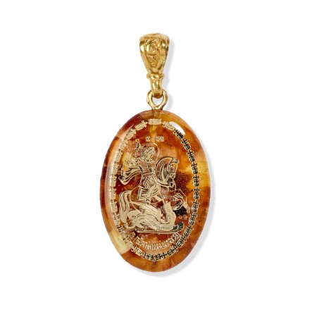 Кулон-образок "Георгий Победоносец" из Янтаря и юв.смолы артикул 41411101 Вы можете заказать в нашем интернет магазине "Янтарь России" с бесплатной доставкой по всей России
