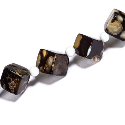 Бусы "Куб" из Янтаря и юв.смолы с агатом артикул 5917005700 Вы можете заказать в нашем интернет магазине "Янтарь России" с бесплатной доставкой по всей России